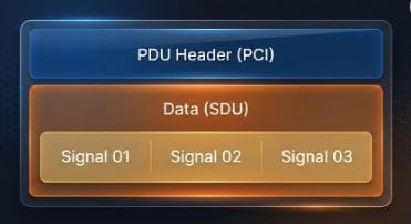 Definition: A PDU is a structured container that holds one or more signals (or signal groups) along with protocol control information. It serves as the standardized format for data exchange between different layers of the communication stack.